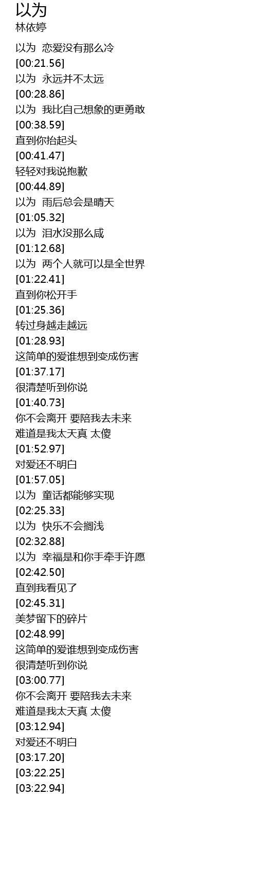 | [02:35.69] | 以为 幸福是和你手牵手许愿 |