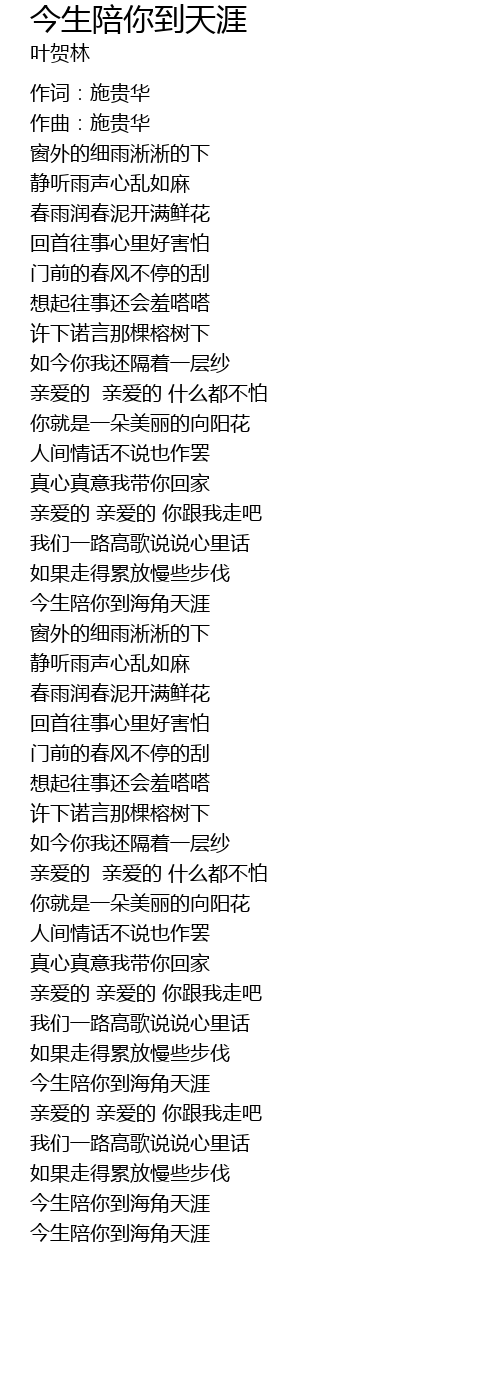 | [03:38.36] | jīn shēng péi nǐ dào hǎi jiǎo tiān yá |