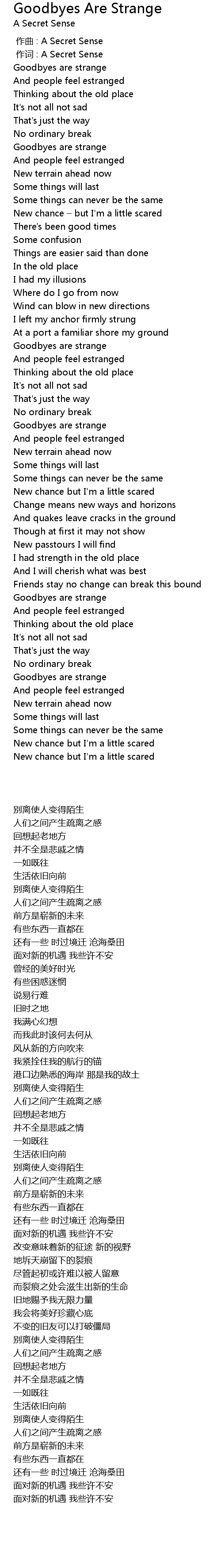 | [00:38.280] | Goodbyes are strange |