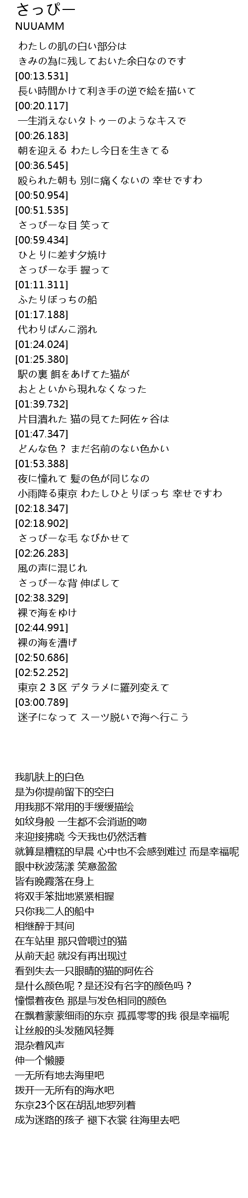 | [03:01.349] | 迷子になって スーツ脱いで海へ行こう |