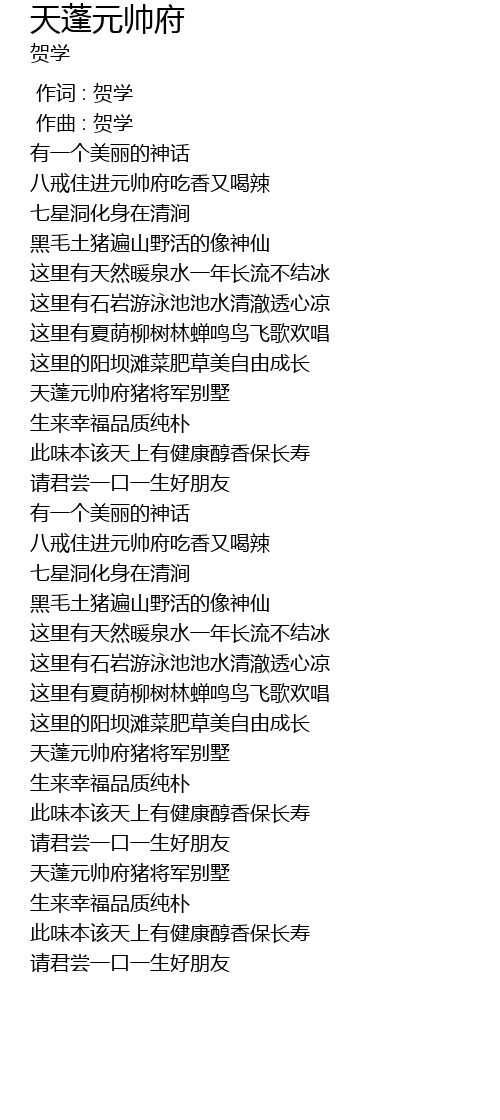 | [03:21.054] | 天蓬元帅府猪将军别墅 |