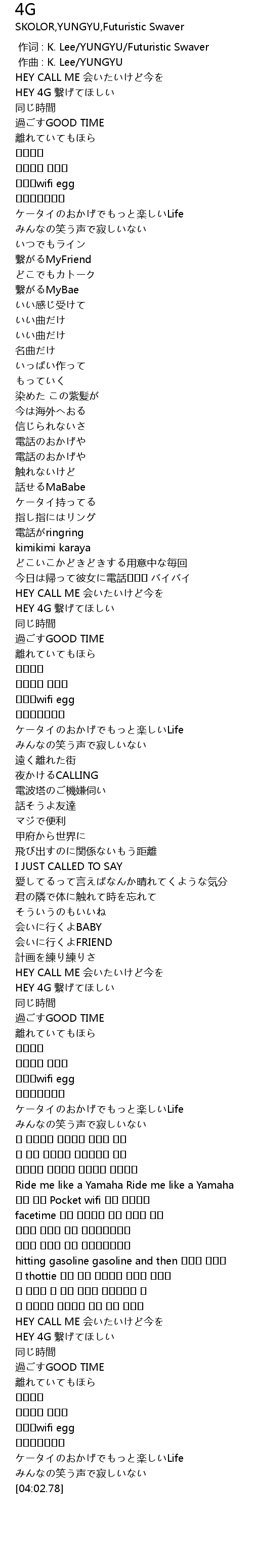 | [02:30.72] | HEY 4G 繋げてほしい |
