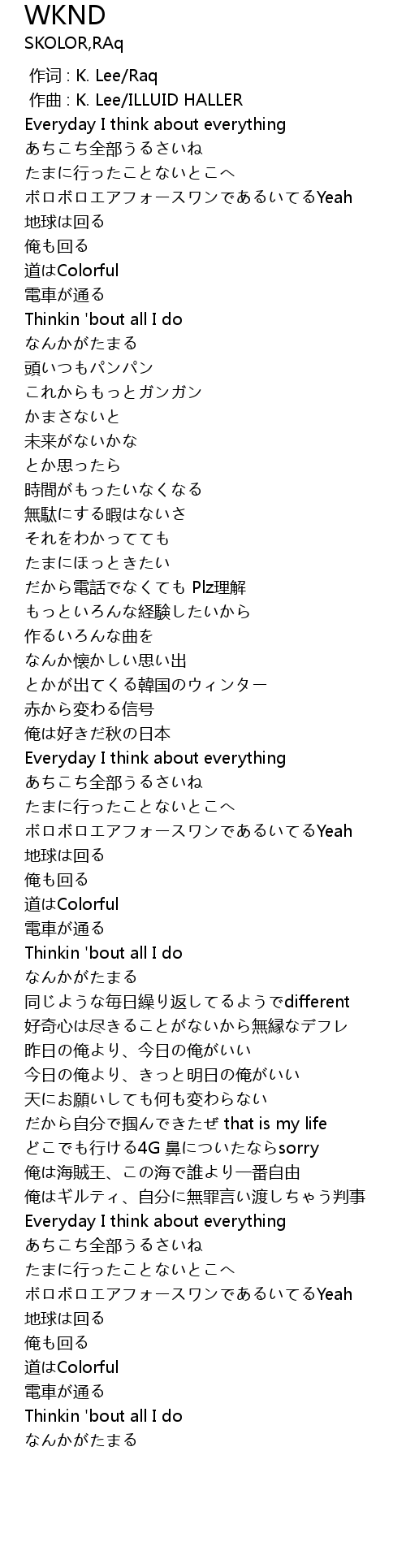 | [00:00.000] | 作词 : K. Lee/Raq |