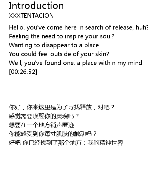 | [00:00.25] | Hello, you've come here in search of release, huh? |
