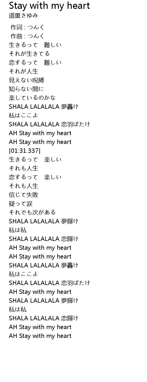| [01:12.633] | SHALA LALALALA 恋羽ばたけ |