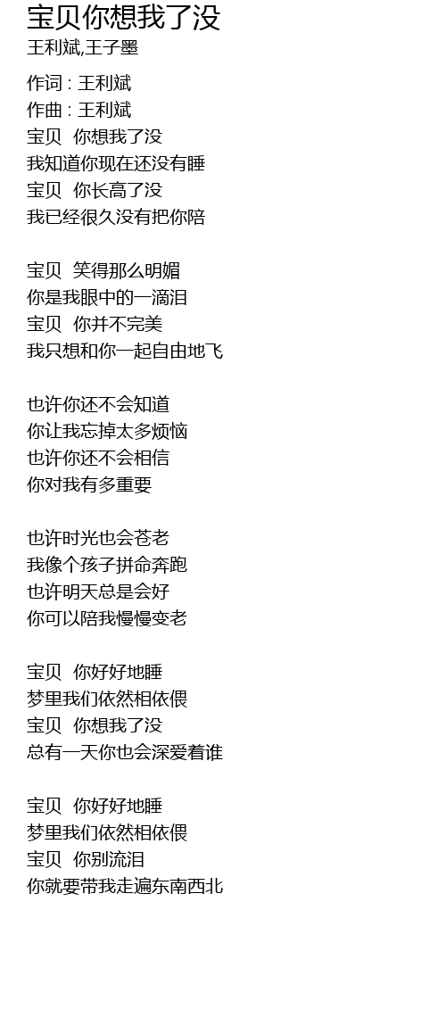 | bǎo bèi nǐ xiǎng wǒ le méi | |