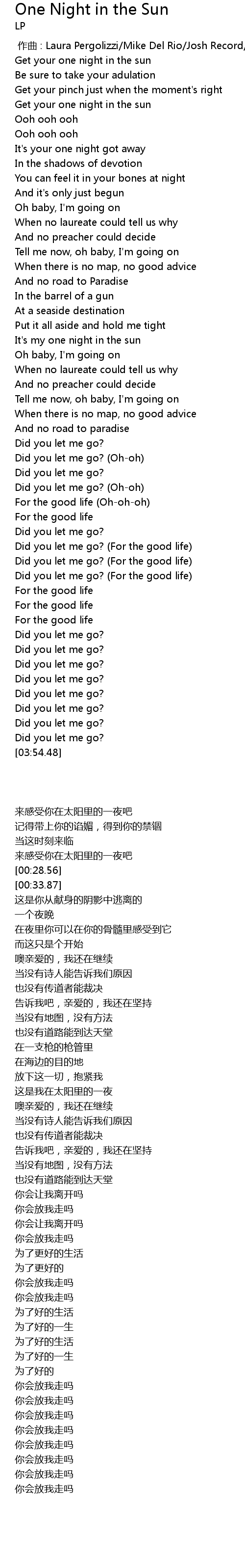| [02:37.29] | Did you let me go? (For the good life) |