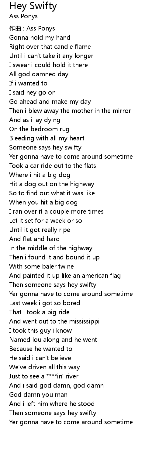 | Then someone says hey swifty | |