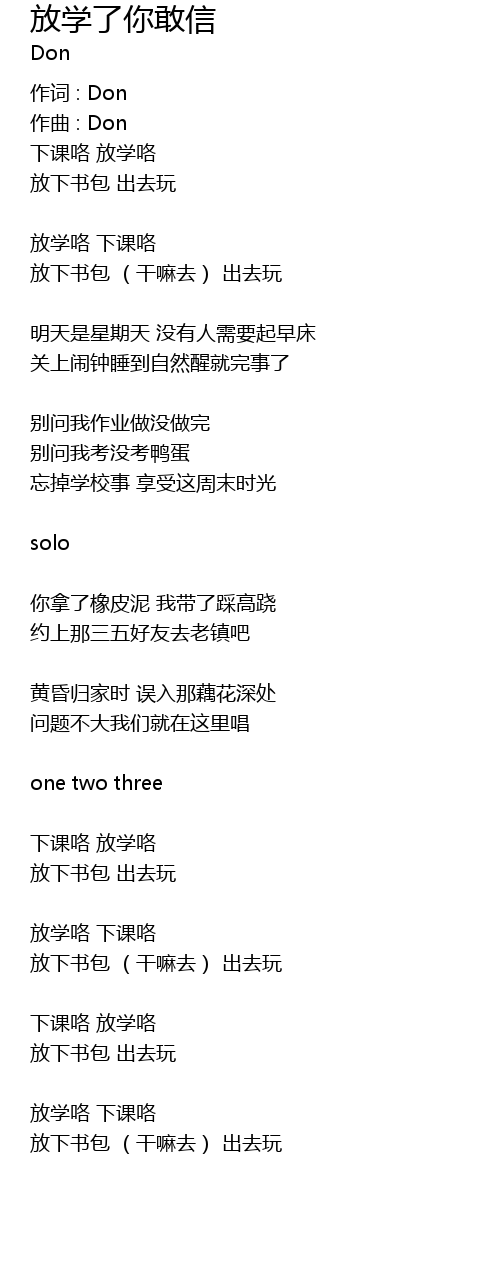 | fàng xià shū bāo gàn ma qù chū qù wán | |