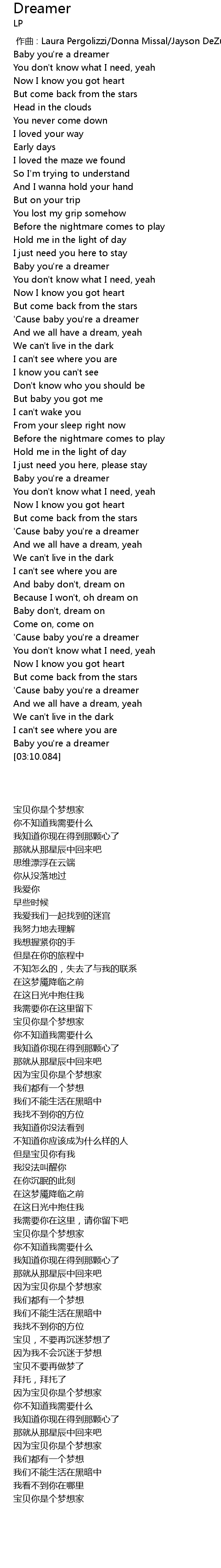 | [02:41.981] | 'Cause baby you're a dreamer |