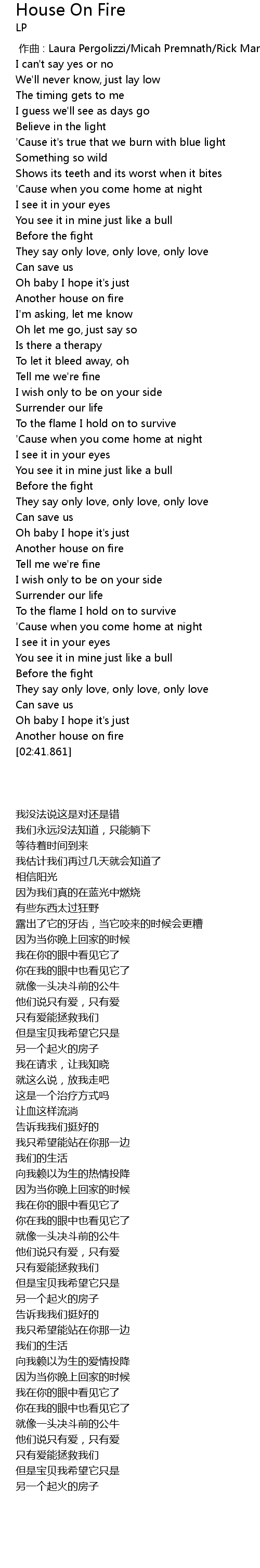| [00:00.000] | 作曲 : Laura Pergolizzi/Micah Premnath/Rick Markowitz |