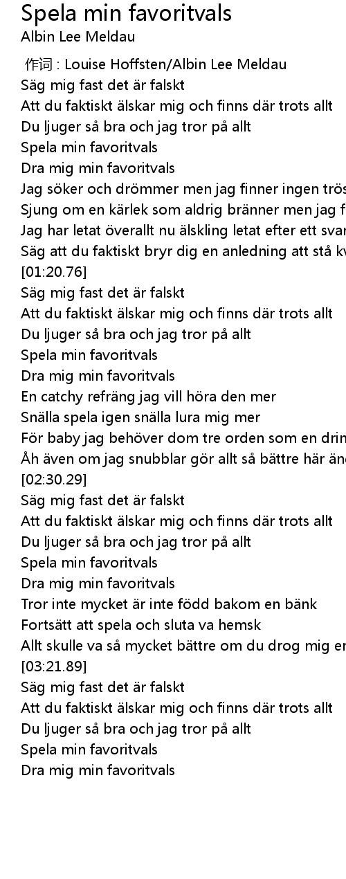 | [00:00.000] | 作词 : Louise Hoffsten/Albin Lee Meldau |