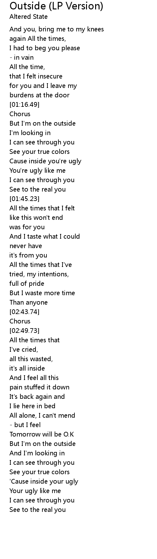 | [04:20.75] | But I'm on the outside |