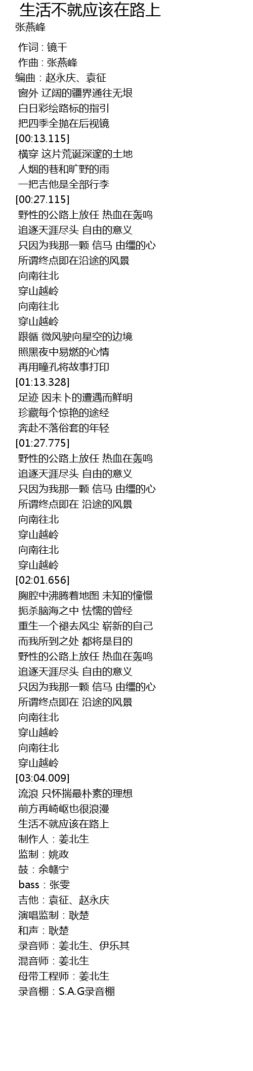 | [03:31.236] | sheng huo bu jiu ying gai zai lu shang |