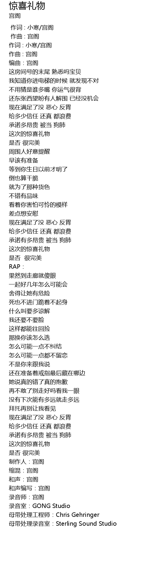| [03:41.74] | 录音室:GONG Studio |