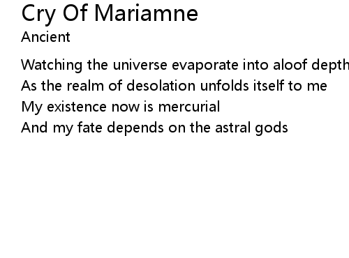 | Song | Cry Of Mariamne |