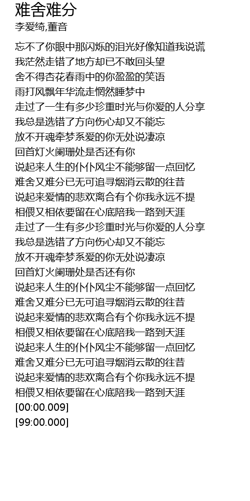 | [04:10.00] | 相偎又相依要留在心底陪我一路到天涯 |