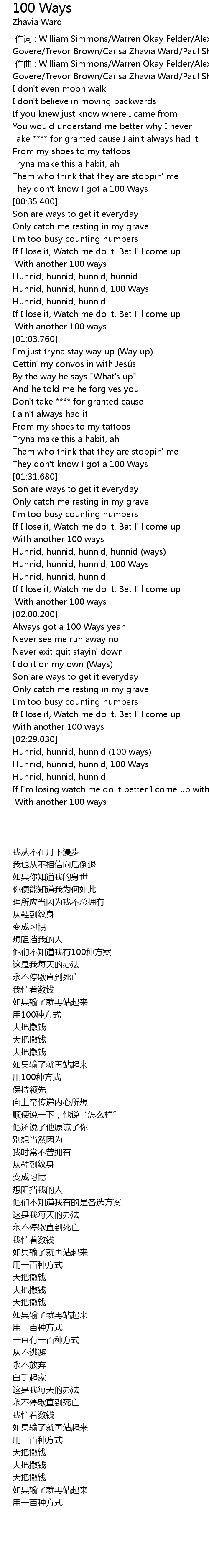 | [00:32.950] | They don' t know I got a 100 Ways |