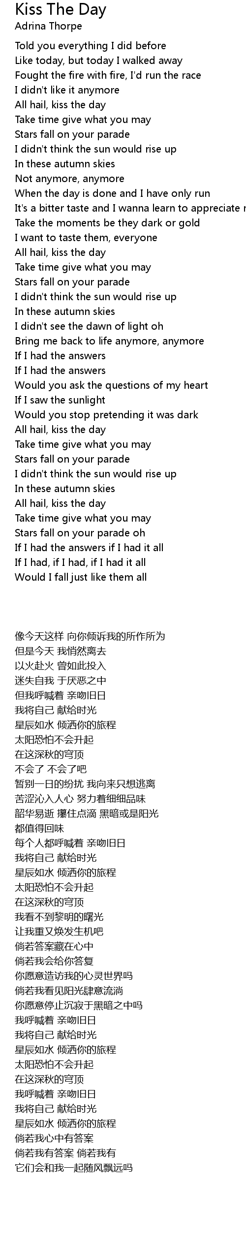 All hail, kiss the day |