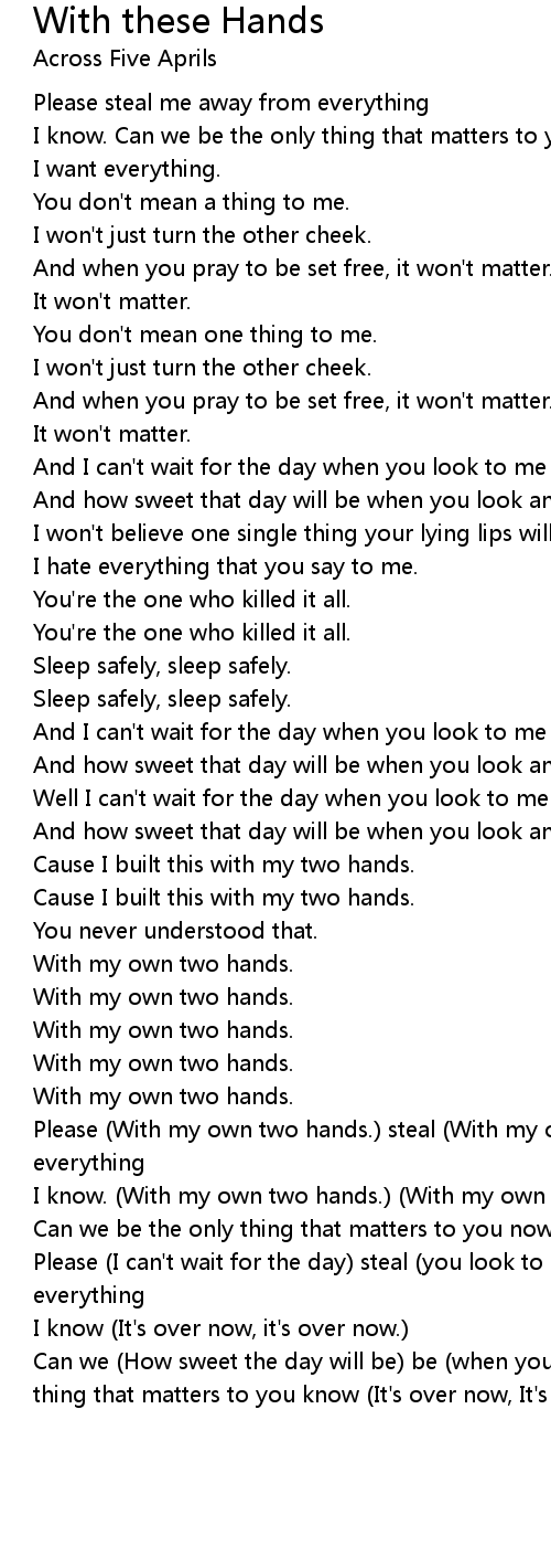 Please (With my own two hands.) steal (With my own two hands.) me away from everything |