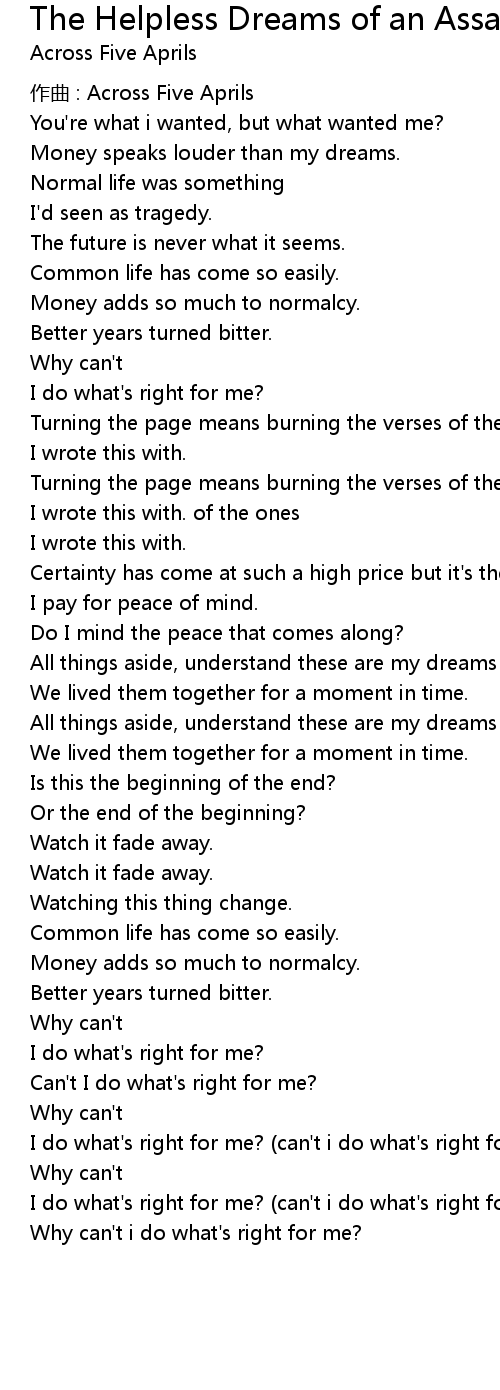 | Song | The Helpless Dreams of an Assassin |