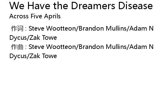 | [00:00.000] | 作曲 : Steve Wootteon/Brandon Mullins/Adam Nordmeyer/Josh Dycus/Zak Towe |