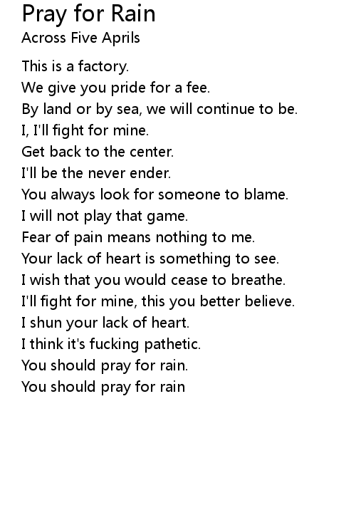 | You should pray for rain |