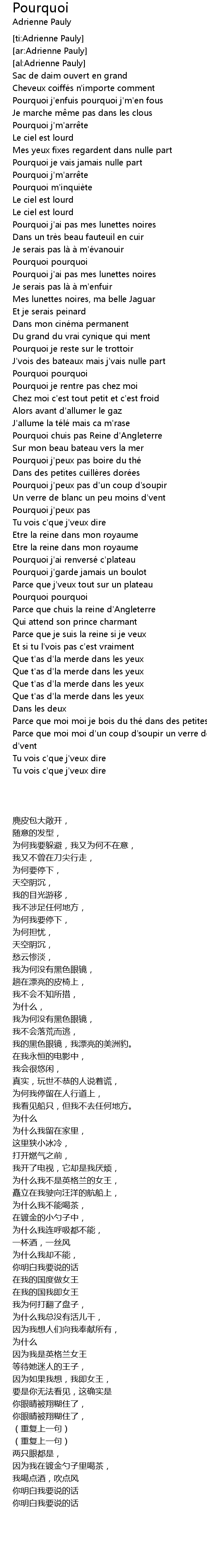 | [00:50.55] | Pourquoi pourquoi |