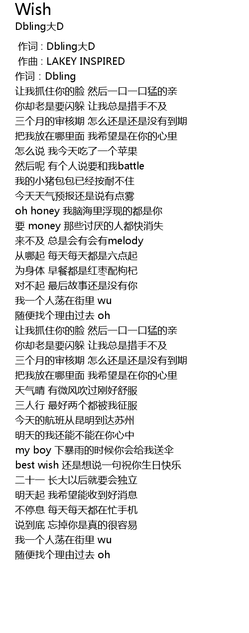 | [00:00.000] | 作词 : Dbling大D |