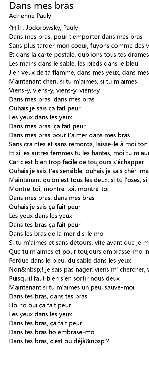 | Dans mes bras, pour t' emporter dans mes bras | |