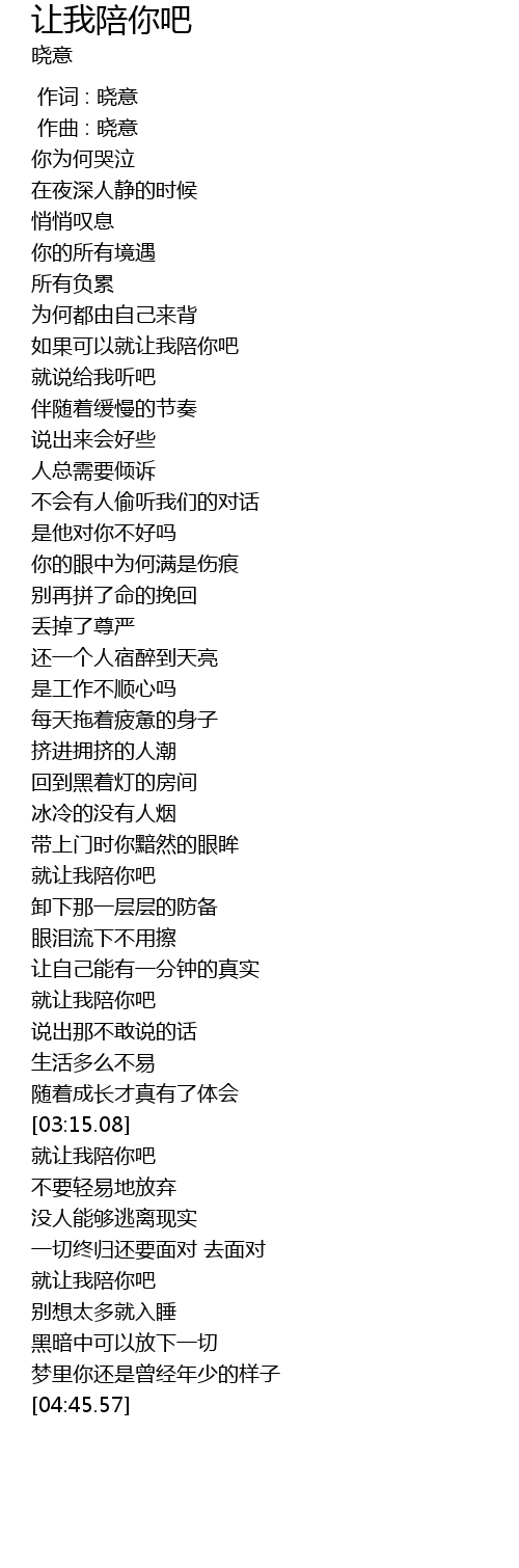 | [03:41.73] | jiù ràng wǒ péi nǐ ba |