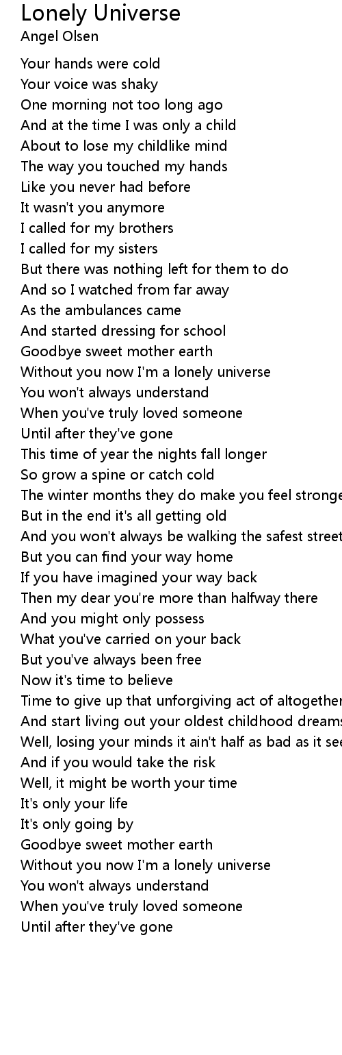 Without you now I'm a lonely universe |