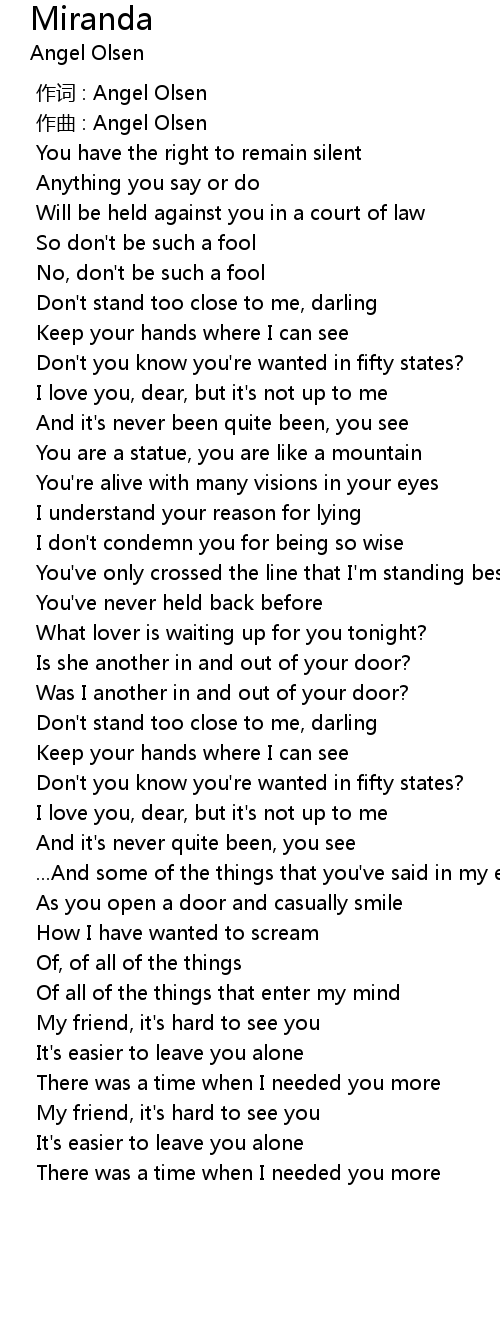 | [00:00.000] | 作词 : Angel Olsen |
