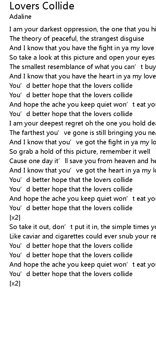 | You' d better hope that the lovers collide | |