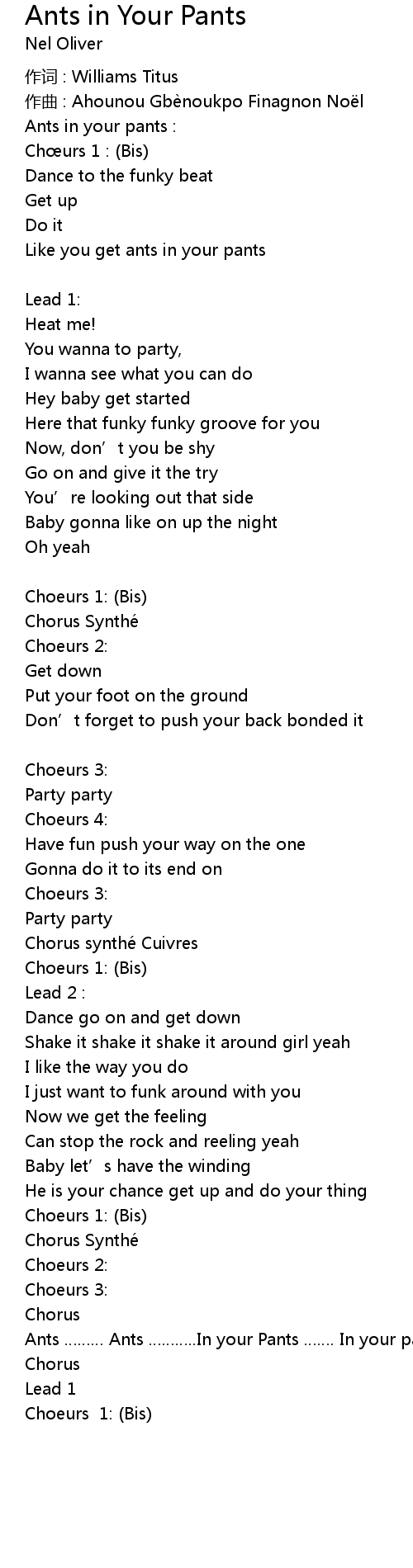 | Ants ……… Ants ………..In your Pants ……. In your pants | |