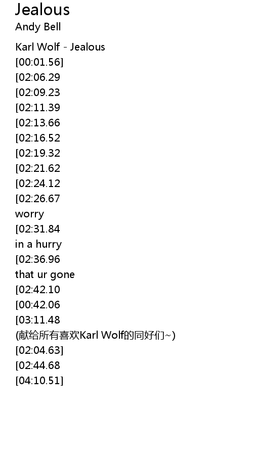 | [03:35.99][02:13.66][00:51.86][00:11.08] | but i was just jealous |