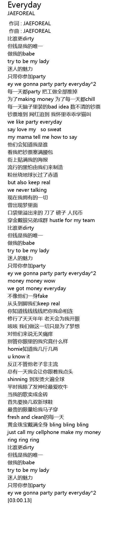 | [00:40.60] | ey we gonna party party everyday*2 |