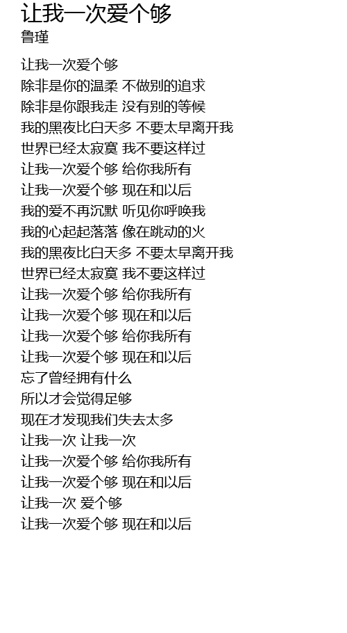 | [00:0.20] | 让我一次爱个够 |