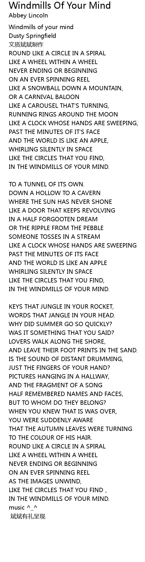 | Windmills of your mind | |