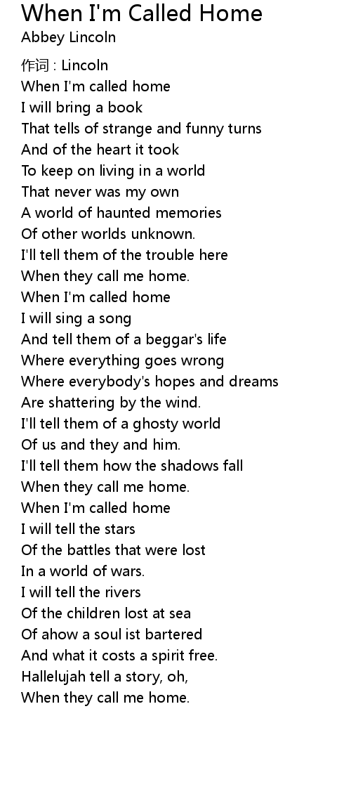 | When I' m called home | |