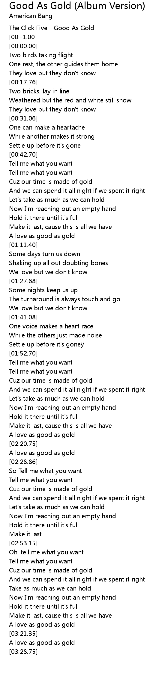 | [00:-2.00] | The Click Five Good As Gold |