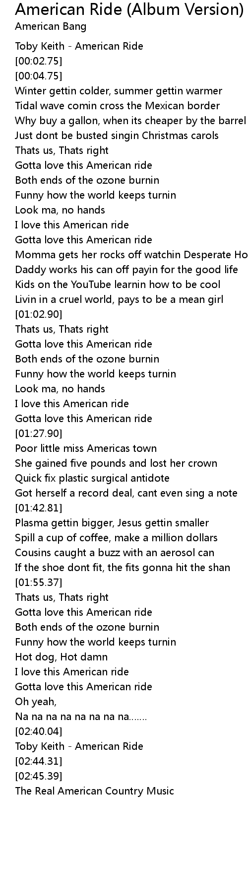 | [00:01.28] | Toby Keith American Ride |