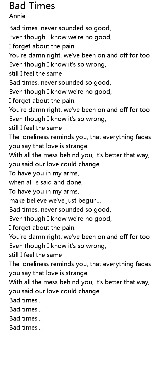 Bad times, never sounded so good, |
