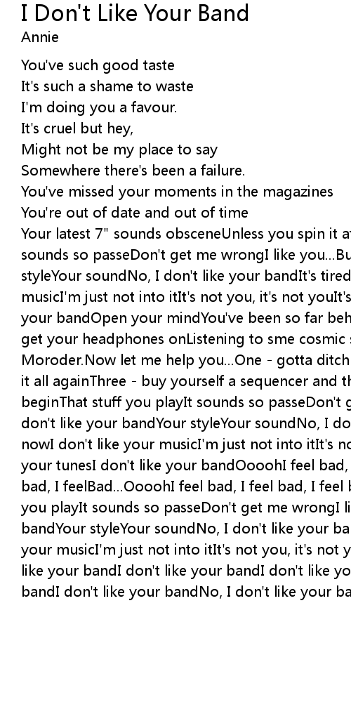 I Don't Like Your Band Lyrics