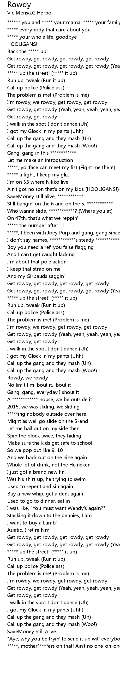 | [00:26.31] | I'm rowdy, we rowdy, get rowdy, get rowdy |
