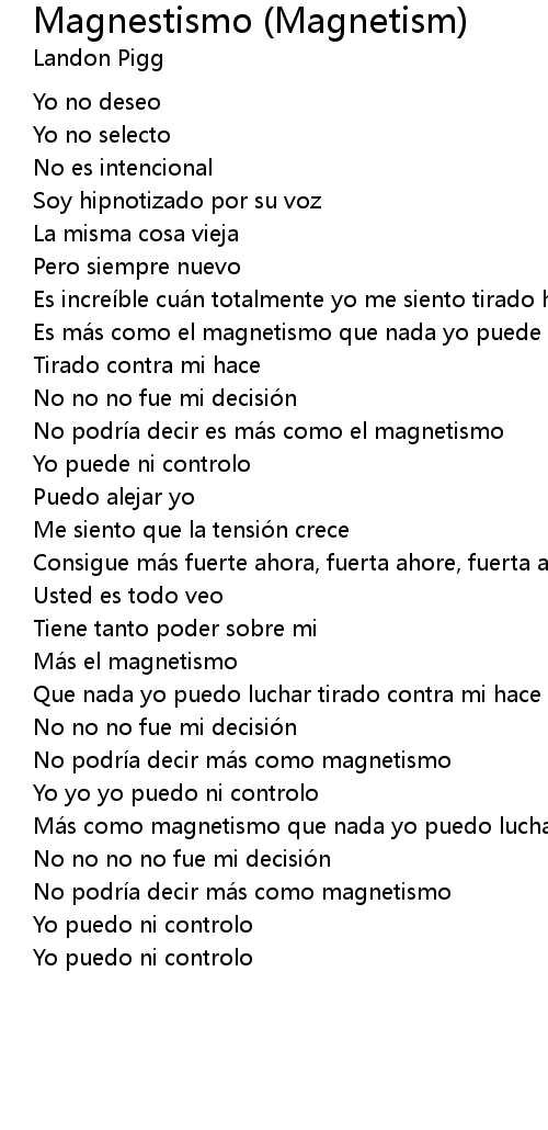 | Má s como magnetismo que nada yo puedo luchar, tirado contra mi hace | |