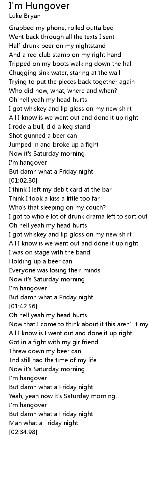 | [01:16.25] | I got to whole lot of drunk drama left to sort out |