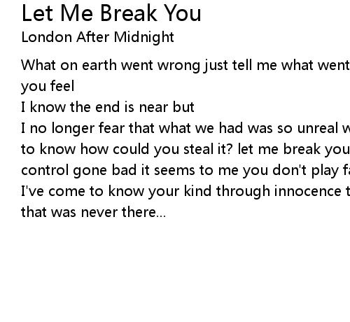 | I no longer fear that what we had was so unreal why can't you feel it? you had to know how could you steal it? let me break you you made it all so mad love or control gone bad it seems to me you don't play fair | |