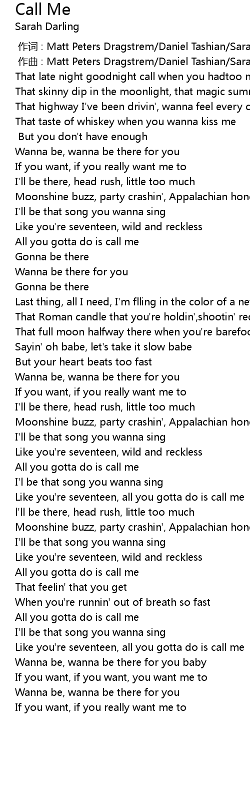 | [02:28.500] | Like you're seventeen, all you gotta do is call me |