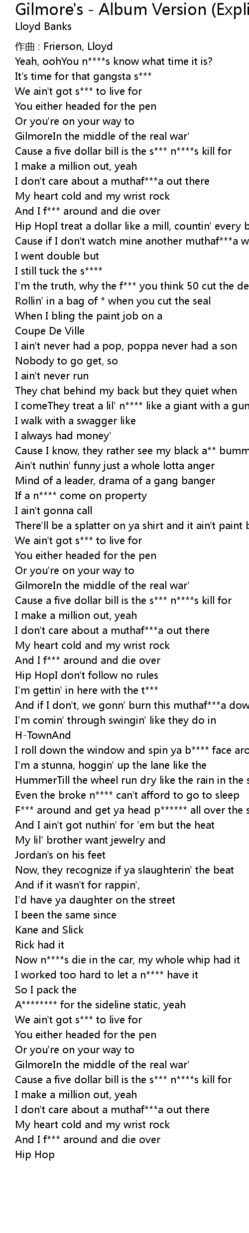 | Song | Gilmore's - Album Version (Explicit) |
